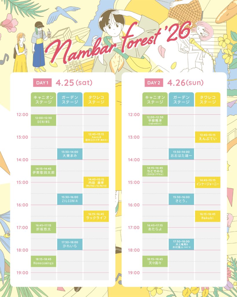 なんばパークスpresents「nambar forest ’26」のタイムテーブルが公開されました。